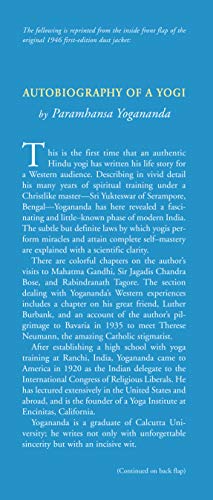 Details: One of the Top 100 Spiritual Books of the Twentieth Century. This is a new edition, featuring previously unavailable material, of a true spiritual classic. Autobiography of a Yogi is one of the best-selling Eastern philosophy titles of all-time, with millions of copies published. New Bonus Materials added to this edition include: a) the last chapter that Yogananda wrote in 1951 covering the years 1946–1951 that was not originally available in the first edition (and without posthumous changes), b) the eulogy that Yogananda wrote for Gandhi, and c) a new afterword by Swami Kriyananda, one of Yogananda's closest direct disciples. Yogananda's masterpiece has been named one of the greatest and most influential books of the twentieth century. This highly prized verbatim reprinting of the original 1946 edition is (unlike other publishers' editions) free from textual changes made after Yogananda's death. Yogananda was the first yoga master of India whose mission brought him to live and teach in the West. His firsthand account of his life experiences in India includes childhood revelations, stories of his visits to saints and masters in India, and long-secret teachings of yoga and Self-realization that he first made available to the Western reader.