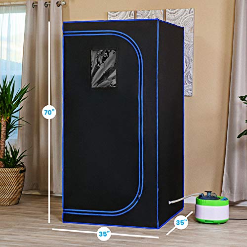 - COLLAPSIBLE DESIGN: This single person sauna kit indoor steam sauna has a compact assembled size of (LxWxH) 35. 4"x35. 4"x70. 9" and conveniently folds away so you can have a mobile spa and you can easily move your sauna dome from one room to another
